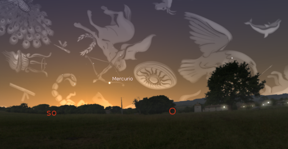 Posición de Mercurio en el cielo el sábado 2 a las 19:30.