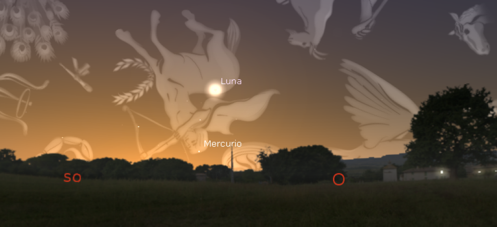 Conjunción de la Luna y Mercurio a las 20:50 h del jueves 14.