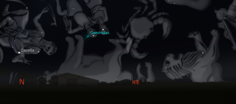 La lluvia de meteoros Gemínidas estará activa del 4 al 17 de diciembre y alcanzará su punto máximo de meteoros alrededor del 14 de diciembre. Durante este período, habrá posibilidades de ver meteoros Gemínidas siempre que el punto radiante de la lluvia (el punto desde donde parecen irradiar los meteoros en el cielo), ubicado en la constelación de Géminis, esté sobre el horizonte. El número de meteoros visibles aumentará cuanto más alto esté el punto radiante en el cielo.