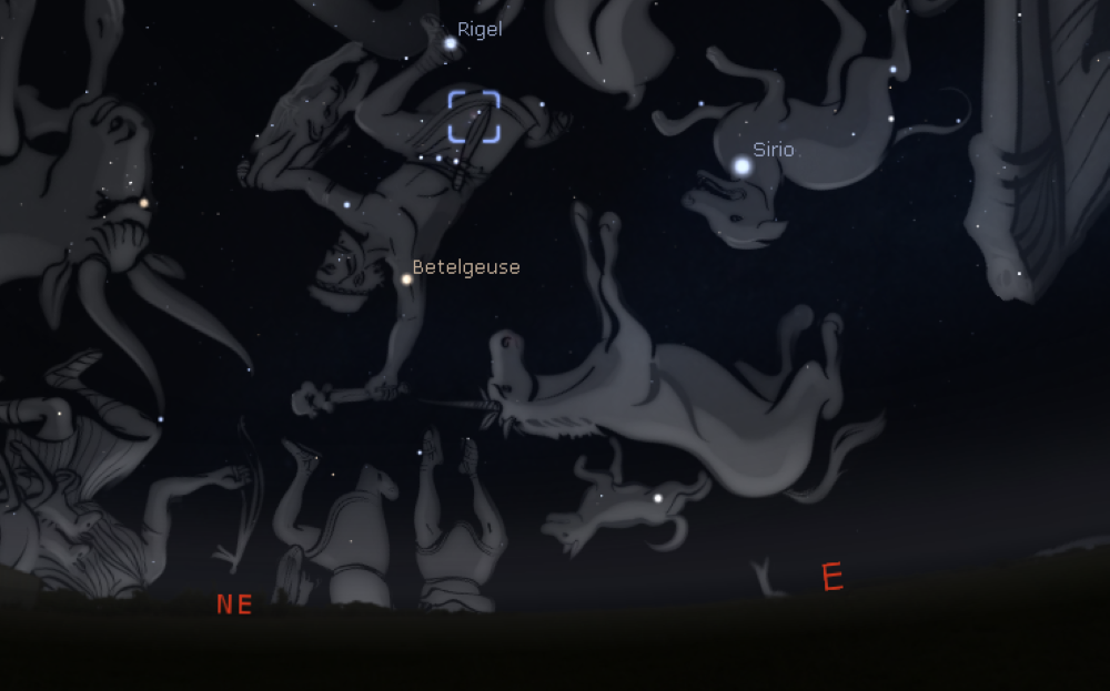 Posición de la nebulosa de Orión el viernes 15 a las 21 aproximadamente.