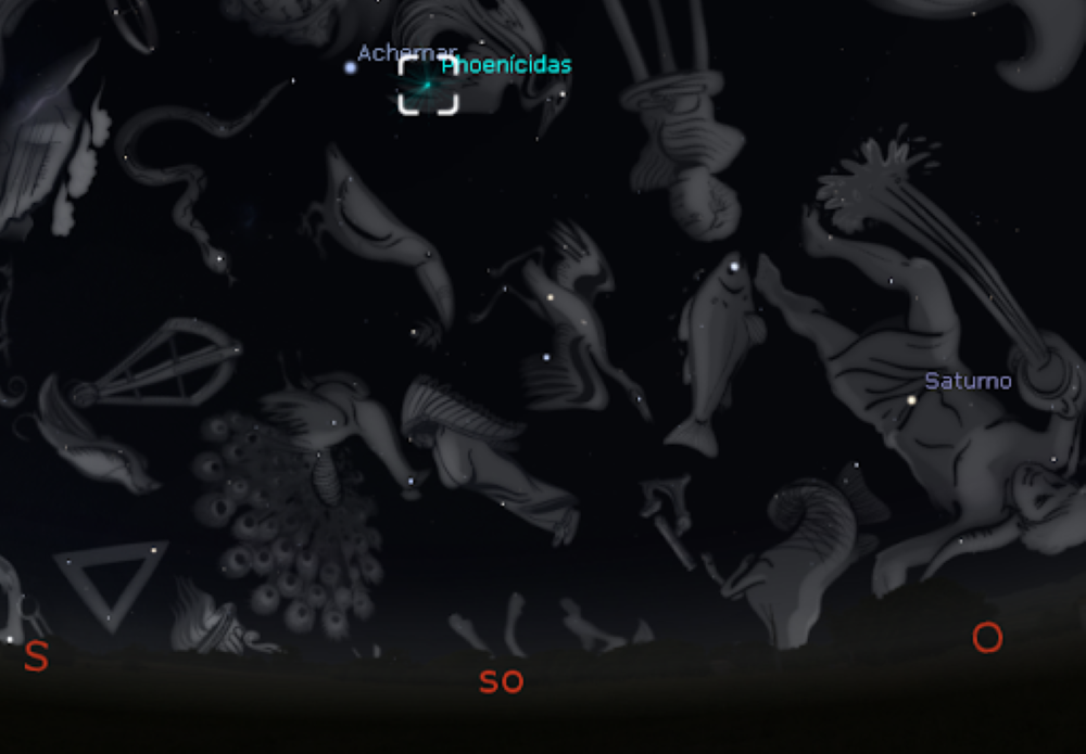 La lluvia de meteoros Phoenícidas estará activa del 28 de noviembre al 9 de diciembre y alcanzará su punto máximo de meteoros alrededor del 2 de diciembre. Durante este período, habrá posibilidades de ver meteoros Phoenícidas siempre que el punto radiante de la lluvia, ubicado en la constelación de Fénix (el punto en el cielo desde donde parecen irradiar los meteoros) esté sobre el horizonte.