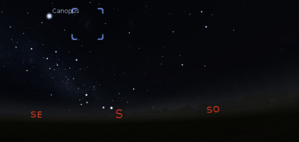 Posición de la Nube mayor de Magallanes el martes 12 a las 21.50.