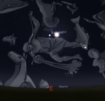 Imagen: Conjunción de Saturno y la Luna, el Domingo 22, a las 01.43 horas www.stellarium.org