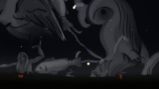 Desde Córdoba, la pareja, ambos ubicados en la constelación de Piscis, será visible en el cielo del amanecer, ascendiendo a las 03:02 horas y alcanzando una altitud de 54° sobre el horizonte nororiental antes de desaparecer de la vista al amanecer alrededor de las 07:44.