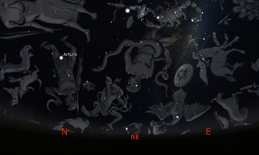 La Luna y Júpiter se encontrarán en conjunción, compartiendo la misma ascensión recta (coordenada del sistema ecuatorial que se utiliza para localizar astros en el cielo) , con la Luna pasando 3°14′ al sur de Júpiter.
